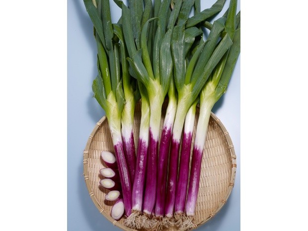 土寄せした葉鞘部が赤紫色になり、分けつしない一本性の赤ネギ。